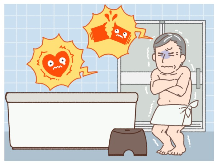特に冬場は、寒い脱衣所などから暖かい浴室に入ったときに、血圧が急激に上昇してしまいます。