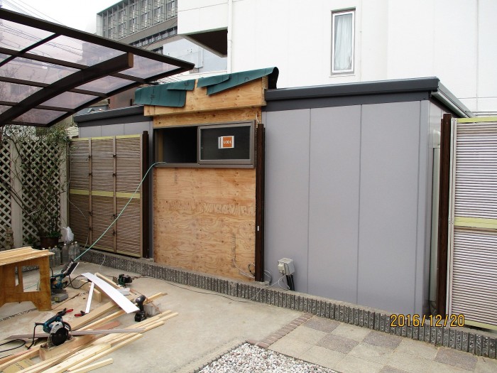 外回りは、まだ工事中ですが、あと中央の板張り部分を、仕上げれば完成です。