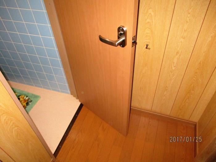 入口のドアは、敷居が飛び上がっていて、つまずきそうだったので、敷居を撤去、