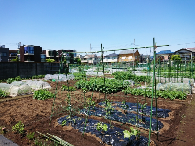畑の外周には、盗難被害に会わないよう、また、猫や小動物などから野菜や果物を守るよう、